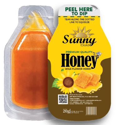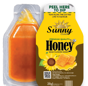 Sunny Gold Honey is packaged in dip and squeeze packs of 20g.