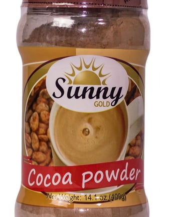 Experience the unadulterated taste and nutritional benefits of Ghana's finest cocoa beans with Sunny Gold Natural Cocoa Powder. Sunny Gold Natural Cocoa Powder is packaged in; Bottles : 400g and 200g.